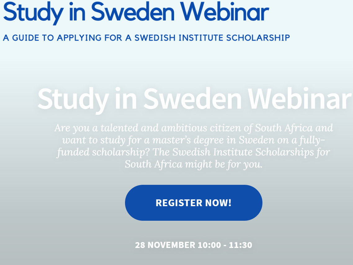 The Swedish Institute Scholarships for South Africa (SISSA) programme is part of the Swedish government’s international awards scheme aimed at developing global leaders who will contribute to the United Nations 2030 Agenda for Sustainable Development. It is funded by the Ministry for Foreign Affairs of Sweden and administered by the Swedish Institute (SI). The programme offers a unique opportunity for future leaders to develop professionally and academically, to experience Swedish society and culture, and to build a long-lasting relationship with Sweden and with each other. SISSA is a special initiative in connection with the Binational Commission agreement between Sweden and South Africa.