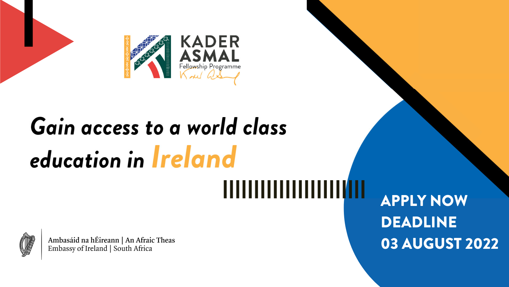 Click here to apply for the Kader Asmal Fellowship for Postgraduate Study in Ireland.